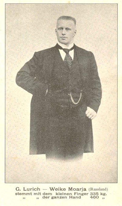 1895. a lõpetas G. Lurich Tallinna Reaalkooli ja sõitis Peterburi oma kehalisi võimeid näitama. Tulemused olid head ja ta hakkas avalikkuse ees esinema. Mida rohkem võite tuli, seda rohkem raha maksti. Oma kirjas Väike-Maarjasse Jakob Tammele kirjutas ta: oleks teadnud, et võidab, poleks lepingut 50 rbl peale sõlminud. Oleks 100 rbl makstud. J. Tammega oli ta suur sõber, käis kodus olles kirjaniku, kihelkonnakooli juhatajaga malet mängimas või muidu aega veetmas, nagu käe surumine või konksõrme tõmbamine.