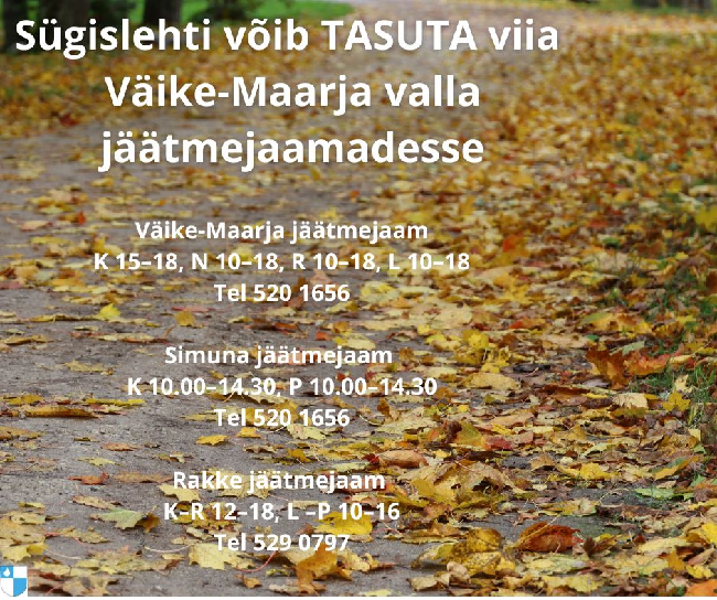 Jäätmejaamade lahtiolekuaegadel saab Väike-Maarja, Simuna ning Rakke jäätmejaamade kompostimisplatsidele TASUTA viia aia- ja haljastusjäätmeid (lehti, oksi) ja töötlemata puitu. ...