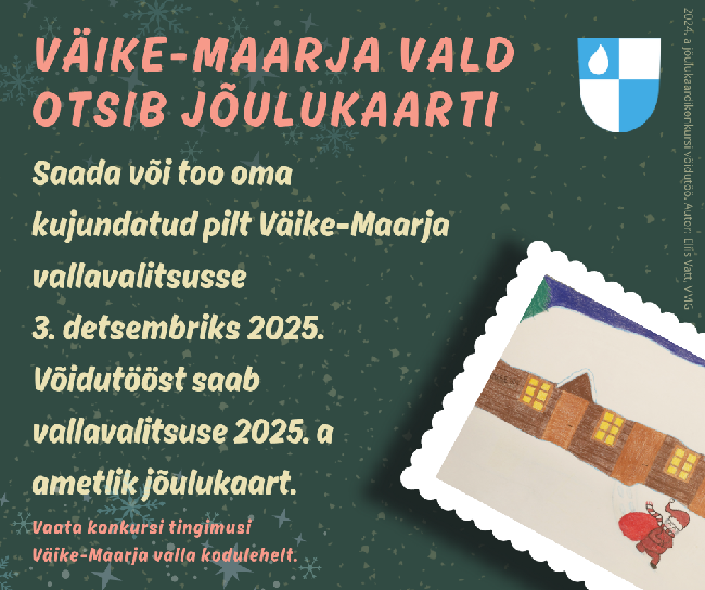 Väike-Maarja vald kuulutab välja konkursi jõulukaartide kujunduste leidmiseks. Vald saadab jõuludeks ja aastavahetuseks kaardi ametiasutustele, partnerorganisatsioonidele ja vallavalitsuse...